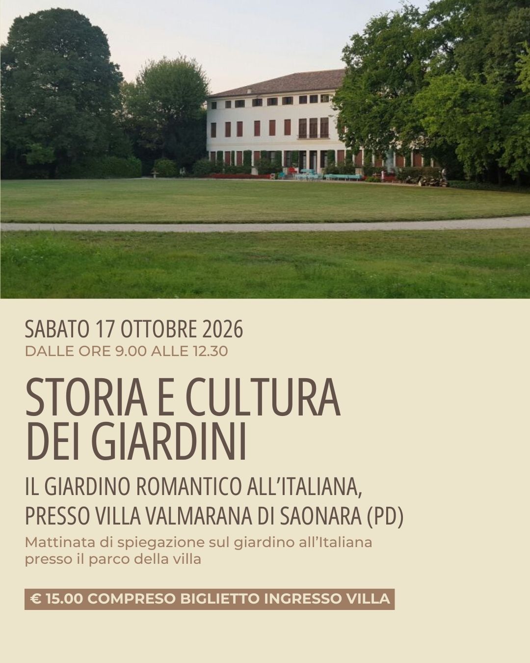 L'ultimo corso agro-ambientale della stagione 2026 in collaborazione con il comune di Legnaro è dedicato alla storia e cultura dei giardini.